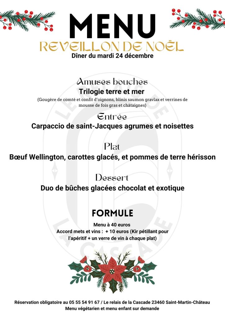 Le Relais de la Cascade, vous invite à célébrer le réveillon de Noël dans une ambiance festive et chaleureuse.