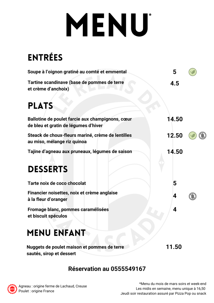 Menu du mois de mars